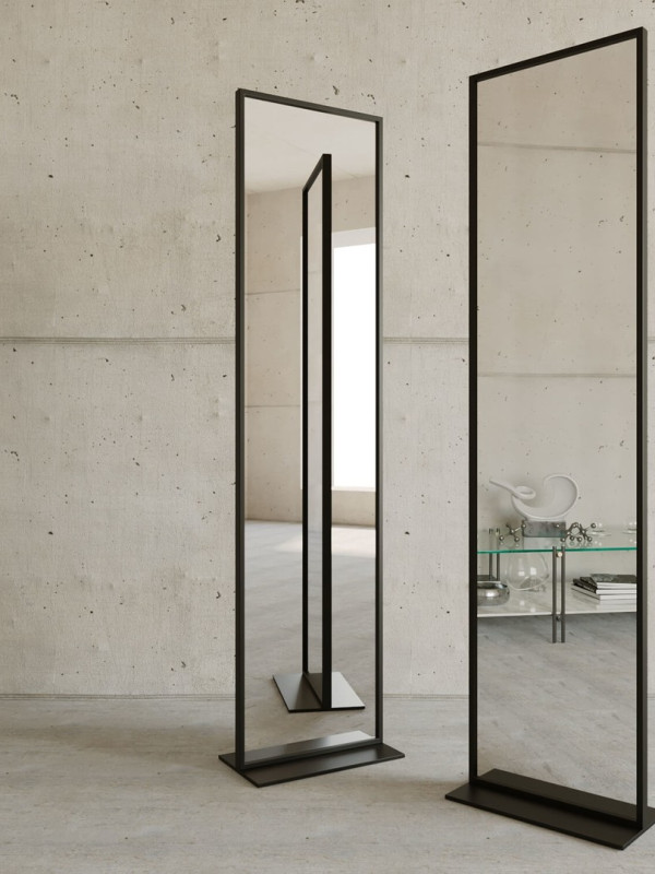 Дизайнерское напольное одностороннее зеркало Glass Memory Ablestar в металлической раме черного цвета в Новотроицке